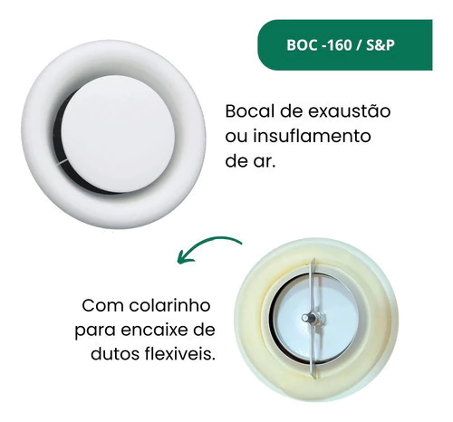 Bocal de Exaustão ou Insuflamento de Ar para Sistemas de Exaustão e Ventilação