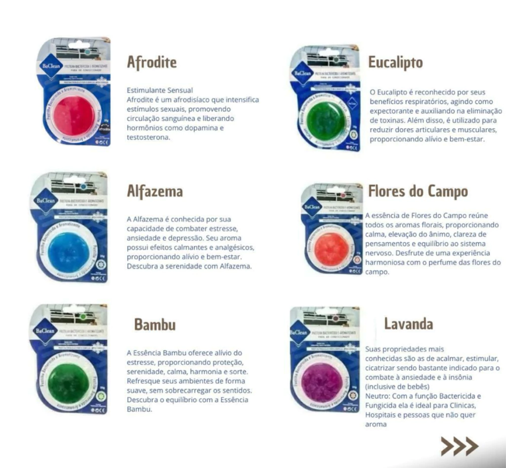 Outros aromas disponíveis: Lavanda, Citronela, Afrodite, Flores do Campo, Eucalipto, Alfazema e Bambu.